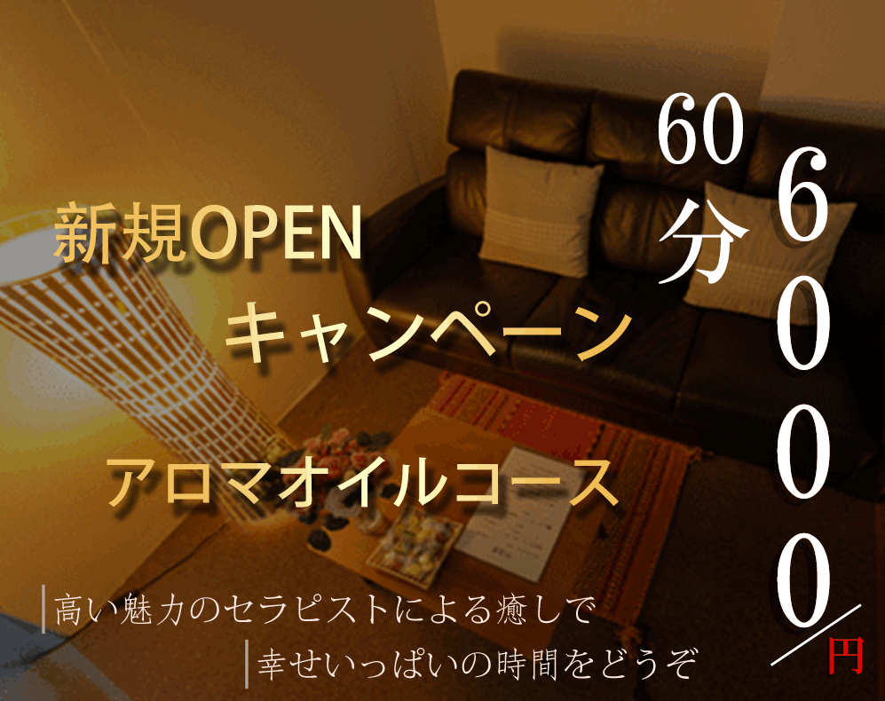 NEW SHOP! ! ! 2026/01/16 当店では、アロマオイルの効能と当店自慢のセラピストによるリンパマッサージの相乗効果による、癒しのひとときをお客様お一人お一人にお届けしております、自然で心やすらぐ優美な香りを、施術中はもちろんご帰宅お休みになってから翌日朝目覚めでまで楽しんで頂けます、どうぞゆっくりご堪能ください。